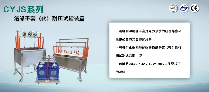 CYAG-A系列智能電力安全工器具試驗裝置是根據(jù)國家最新電力行業(yè)標準而設(shè)計的、性能先進的智能型耐壓試驗設(shè)備平臺,本平臺主機采用了PLC控制器技術(shù)、2.4G ISM組網(wǎng)技術(shù)、結(jié)合優(yōu)良的人機界面操作,使您在使用時輕松自如、得心應(yīng)手。本平臺主機與我公司CYMA-2型智能高壓毫安表無線組網(wǎng),結(jié)合各種輔助測試結(jié)構(gòu),就構(gòu)成電力安全工器具綜合試驗成套裝置,精確測量多路高壓泄漏電流。本裝置能可靠地鑒別絕緣手套(靴)和絕緣拉桿的泄漏電流,絕緣老化和工頻耐壓等參數(shù),可同時檢測六只絕緣手套(靴)和多根絕緣桿;配驗電器功能檢測裝置可對驗電器的起動電壓和抗干擾性能進行測試。若選配相關(guān)輔助測試夾具或配套電極裝置,可用于絕緣毯、絕緣墊、絕緣袖套、絕緣服、絕緣帽、絕緣梯、絕緣擋板、絕緣凳等絕緣工具的耐壓試驗。以考核產(chǎn)品的絕緣水平,發(fā)現(xiàn)被試品的絕緣缺陷,衡量過電壓的能力。